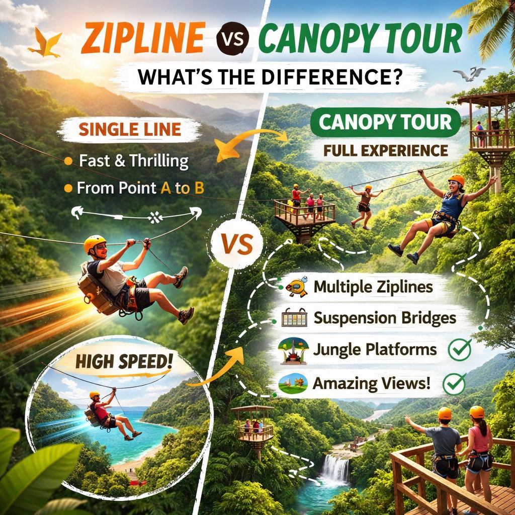 If you’re planning an adventure in Puerto Vallarta, you may come across two popular terms: zipline and canopy tour. Many travelers wonder if they are the same thing or if there is a difference between them.